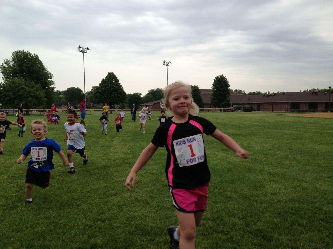I ran the running race with Kedzie. Guess what I won, I won, first place.