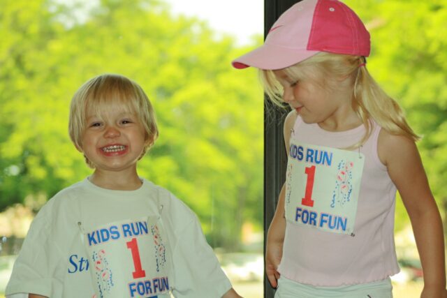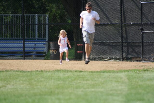 Check it out. I had first very first running race with Kedzie. We got bids and numbers and everything. It was super fun. I cannot wait till I can run with Mommy.
