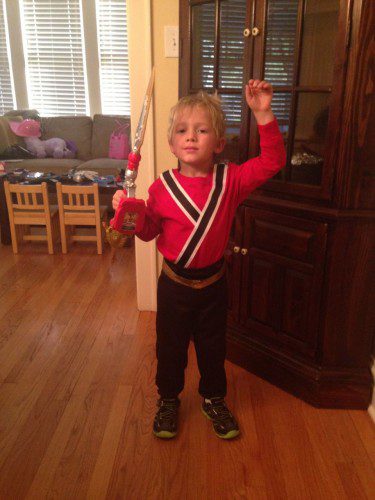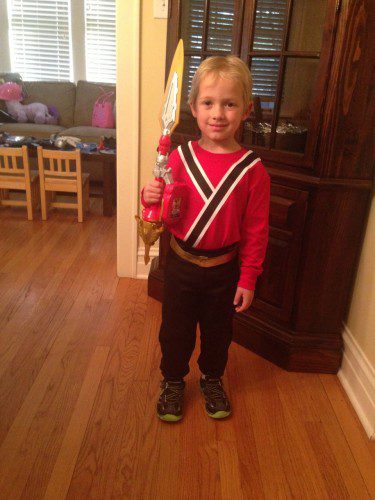 Power Rangers Samurai Yeah. Look at my super awesome costume for Halloween. I cannot wait to go trick or treating with all my friends and get some candy.
