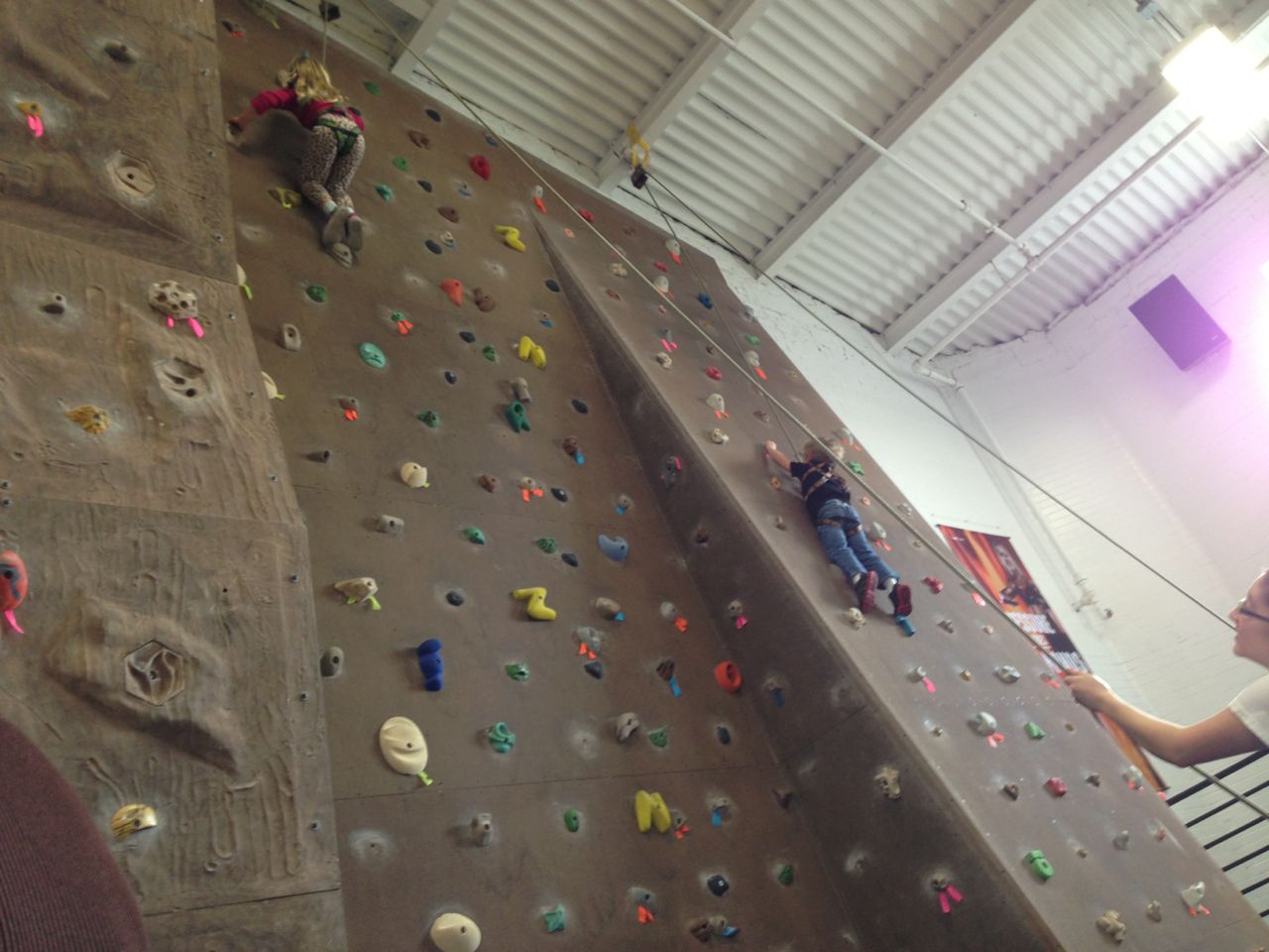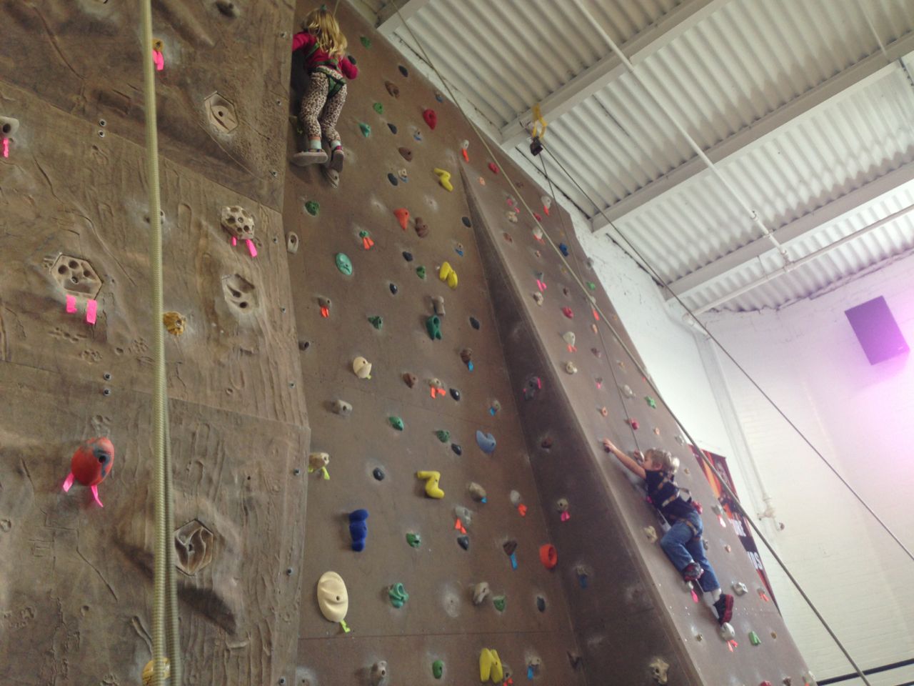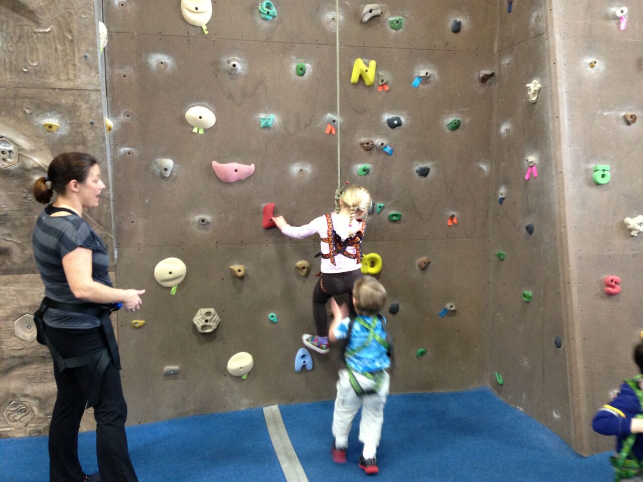 We started our new rock climbing class at the YMCA. Get this, I made it all the way to the top of the wall and rang the bell. I was the only one that made it.